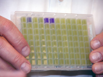 Ljubičasti uzorci mleka predstavljaju pozitivnu analizu na prisustvo antibiotika u mleku