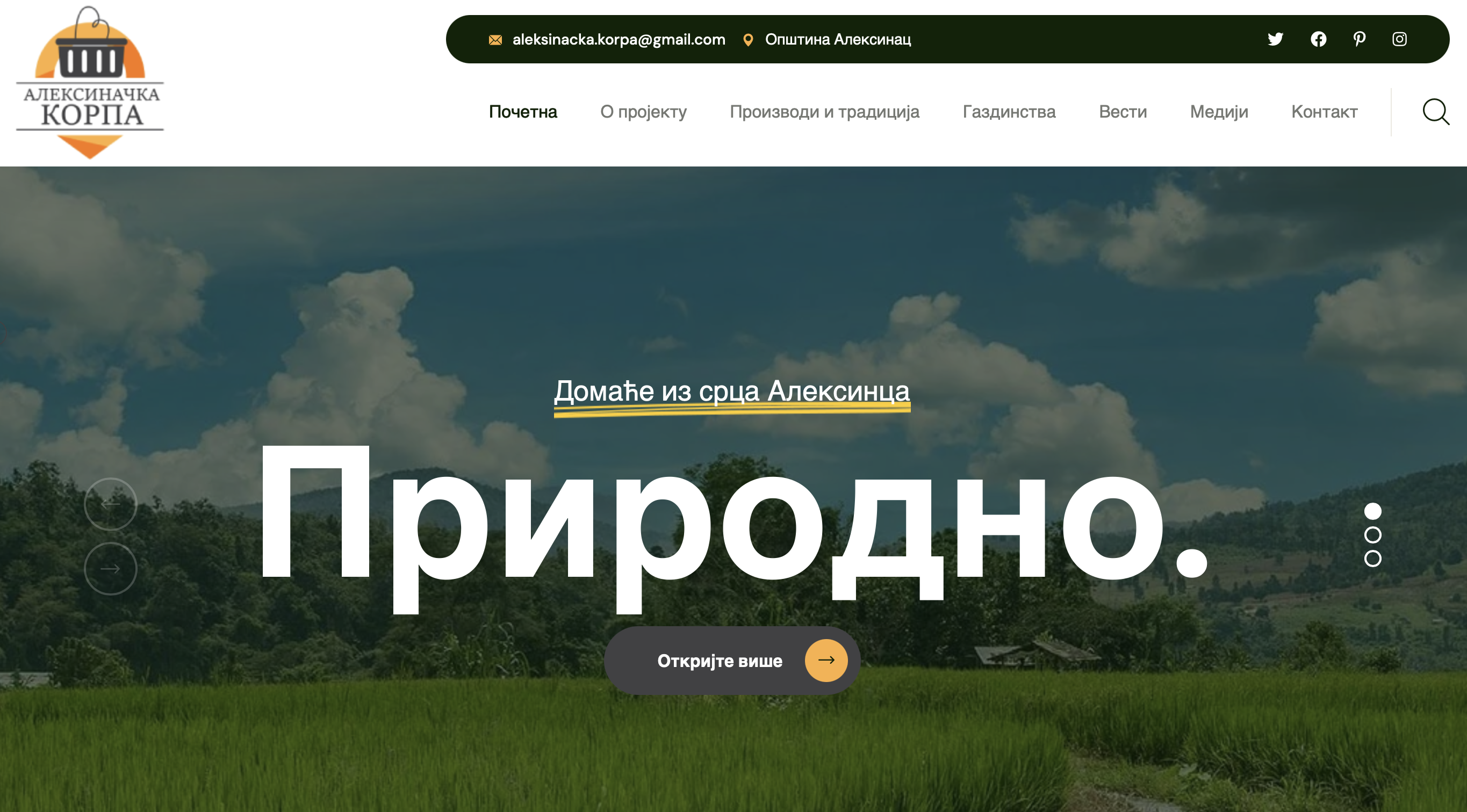 Сајт ће само вршити представљање домаће алексиначке понуде, продаја се обавља директно од произвођача! Циљ пројекта је афирмација рада наших грађана.