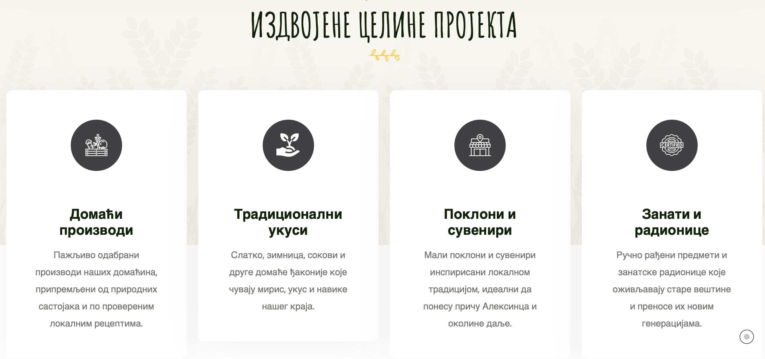 Сагласан/сагласна сам да сајт креира и уређује Удружење „Читалићи”, уз подршку Кабинета министра за развој недовољно развијених општина, искључиво у сврху промоције локалних произвођача, очувања традиције и културног наслеђа.