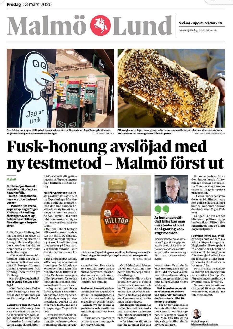 Ево линка ка оригиналном тексту: https://www.sydsvenskan.se/malmo/normals-fusk-honung-avslojad-av-ny-testmetod-malmo-forst-ut/