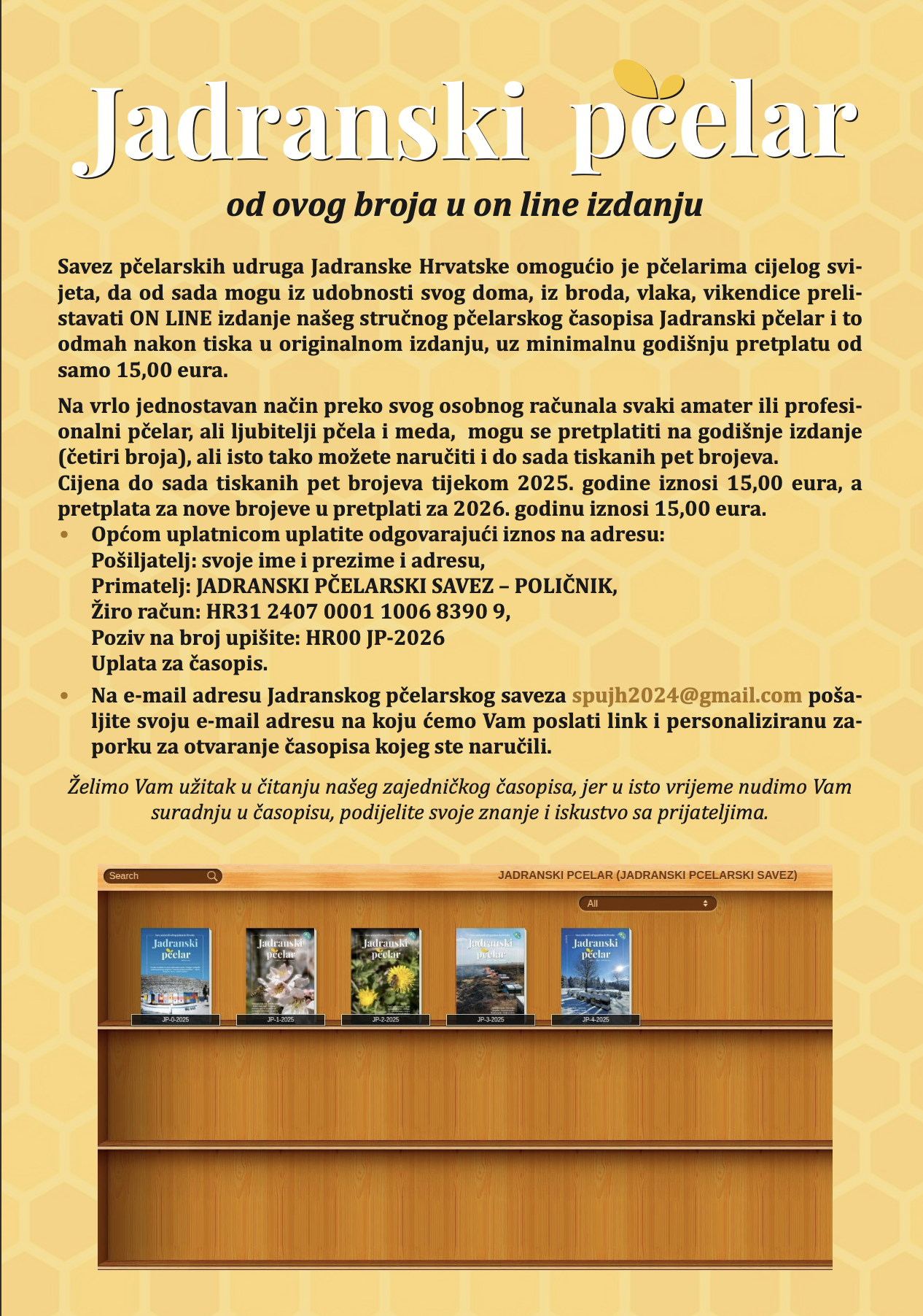 Часопис ”Јадрански пчелар” покреће електронско издање часописа.