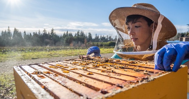 Др Алисон Мекафи (Alison McAfee) прегледа пчелињу заједницу. Фото: Leslie Kennah